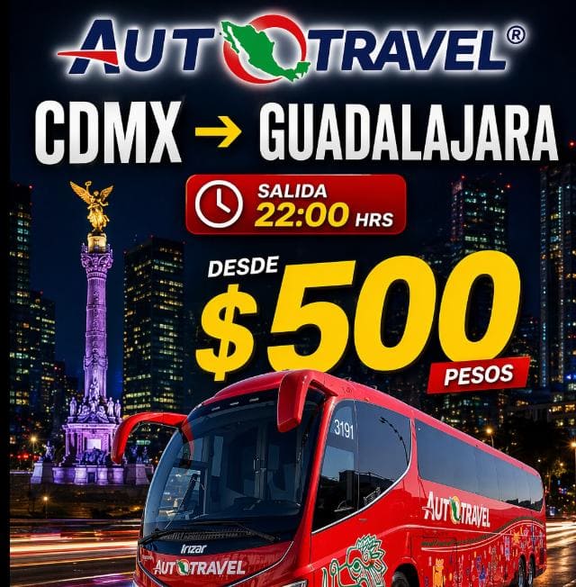 Ya sabes, puedes viajar a Guadalajara, desde muy cerca de la Central del Norte, por $500 pesos, comprando ya en autotravel.mx